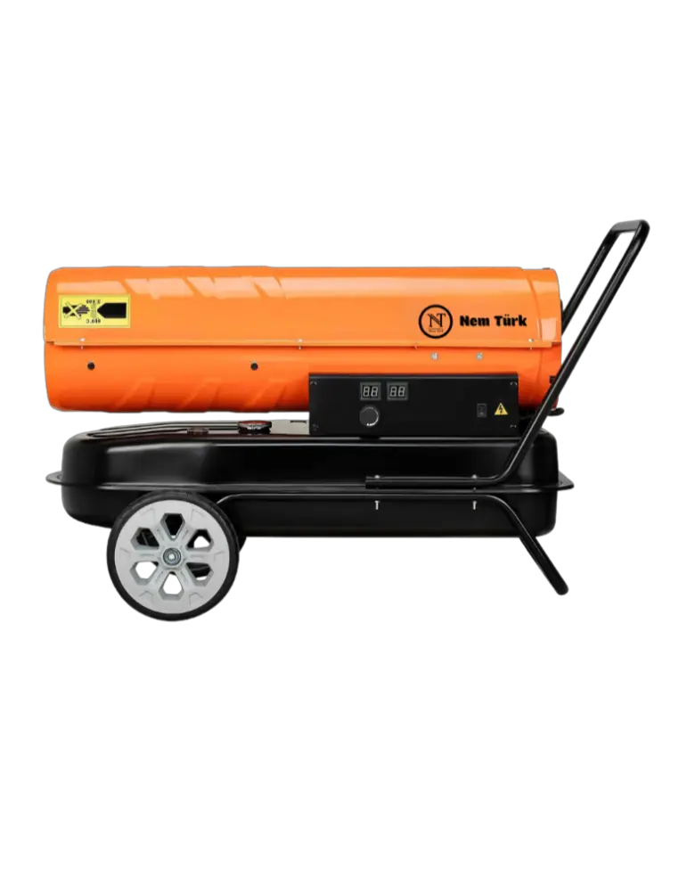 Dizel Isıtıcı serimiz, en zorlu kış şartlarında bile yüksek kalori çıktısı sağlayarak geniş alanları anında ısıtmak üzere tasarlanmış profesyonel bir iklimlendirme çözümüdür. İleri yanma teknolojisi sayesinde yakıtı minimum tüketimle maksimum ısı enerjisine dönüştürerek yüksek enerji verimliliği sağlar ve operasyonel maliyetlerinizi düşürür. Cihazın güçlü fan sistemi, üretilen sıcak havayı homojen bir şekilde ortama dağıtırken, akıllı kontrol paneli sayesinde sıcaklık takibi kolayca yapılabilir. Kompakt ve taşınabilir tasarımı, tekerlekli yapısı ve dayanıklı gövdesi ile şantiyeden depoya her türlü arazi koşulunda kolay hareket kabiliyeti sunar. Kapalı alanlarda güvenli kullanım için geliştirilen emniyet sensörleri ve yakıt bitme uyarısı gibi güvenlik donanımlarıyla kesintisiz ve emniyetli bir ısınma konforu sağlar.